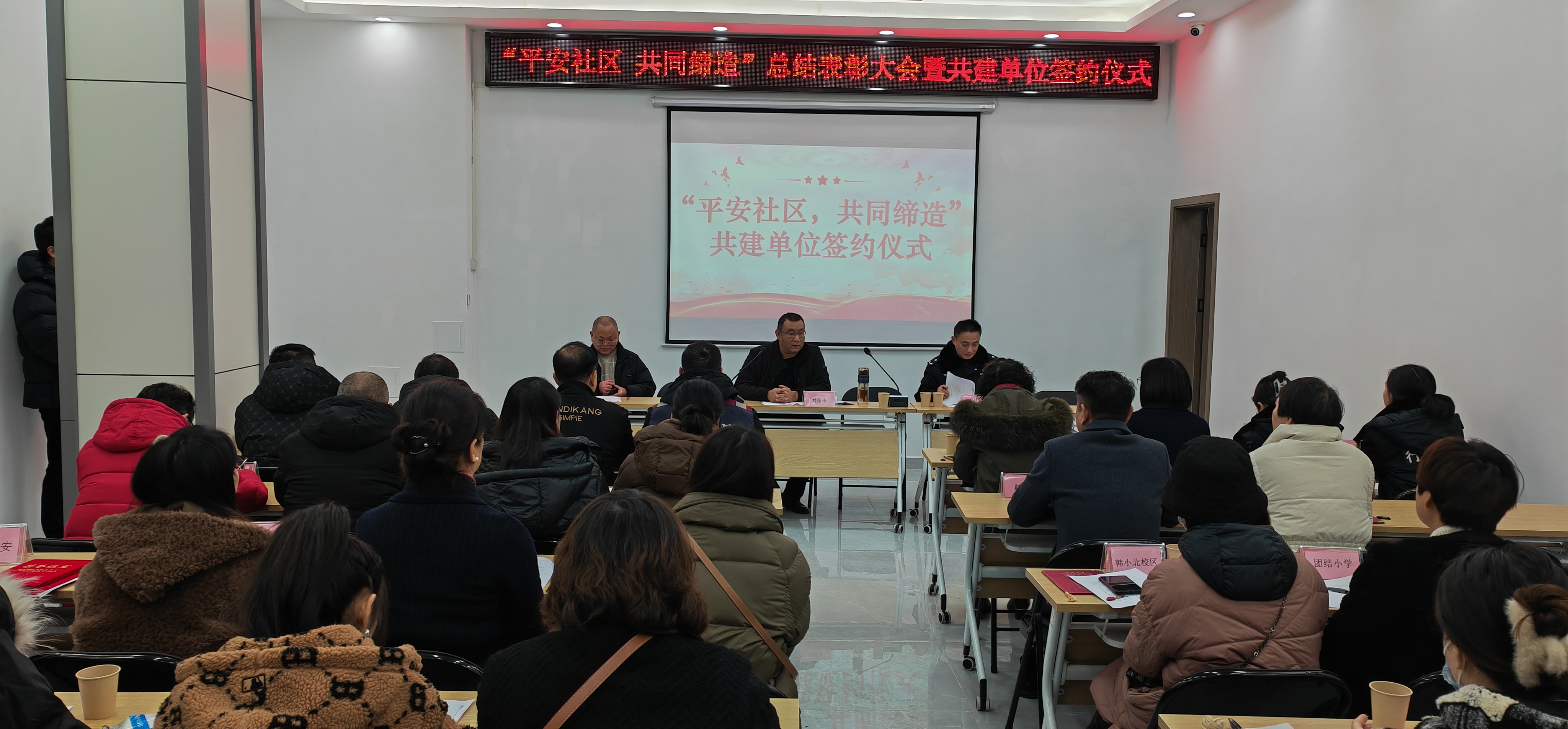 1月17日上午,武漢市硚口區(qū)長(zhǎng)豐街道舉辦了“平安社區(qū) 共同締造”總結(jié)表彰大會(huì)暨共建單位簽約儀式。長(zhǎng)豐街道辦主任劉國(guó)偉、綜治主任李謙、長(zhǎng)豐派出所所長(zhǎng)梅光濤出席,我司受邀參加會(huì)議,并簽訂平安社區(qū)共建協(xié)議。