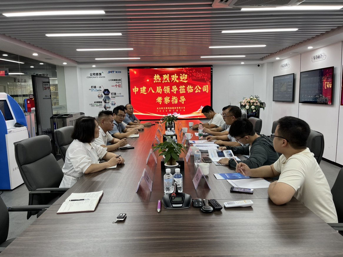 7月7日,中國(guó)建筑第八工程局有限公司華中分公司(以下簡(jiǎn)稱“中建八局”)相關(guān)領(lǐng)導(dǎo)一行蒞臨武漢斯艾特科技股份有限公司(以下簡(jiǎn)稱“武漢斯艾特”)考察指導(dǎo)。公司黨支部書記、董事長(zhǎng)張濤攜各部門主要負(fù)責(zé)人熱情接待考察團(tuán)一行,雙方通過(guò)座談交流與實(shí)地考察,圍繞深化合作、共促發(fā)展進(jìn)行了深入探討。
