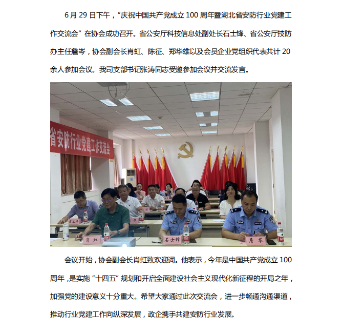 慶祝建黨100周年暨湖北省安防行業(yè)黨建工作交流會成功召開