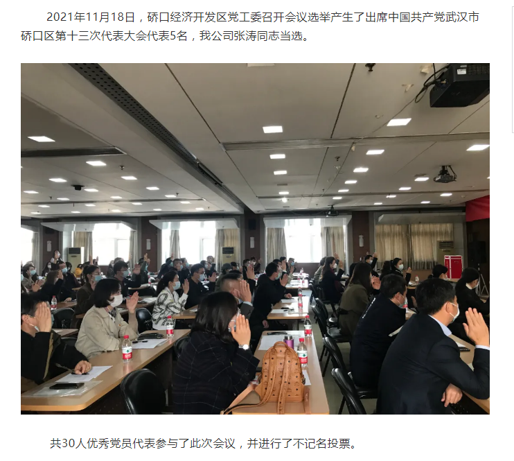 張濤同志當(dāng)選黨代表將參加 中國(guó)共產(chǎn)黨武漢市硚口區(qū)第十三次代表大會(huì)