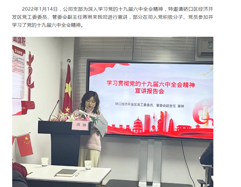 公司支部組織學習貫徹黨的十九屆六中全會精神